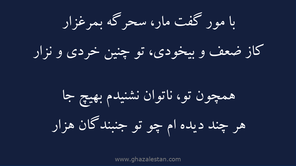 کاز ضعف و بيخودي، تو چنين خردى و نزار