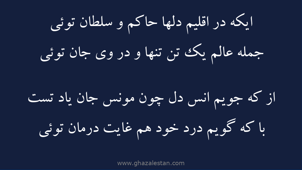 ايکه در اقليم دلها حاکم و سلطان توئى