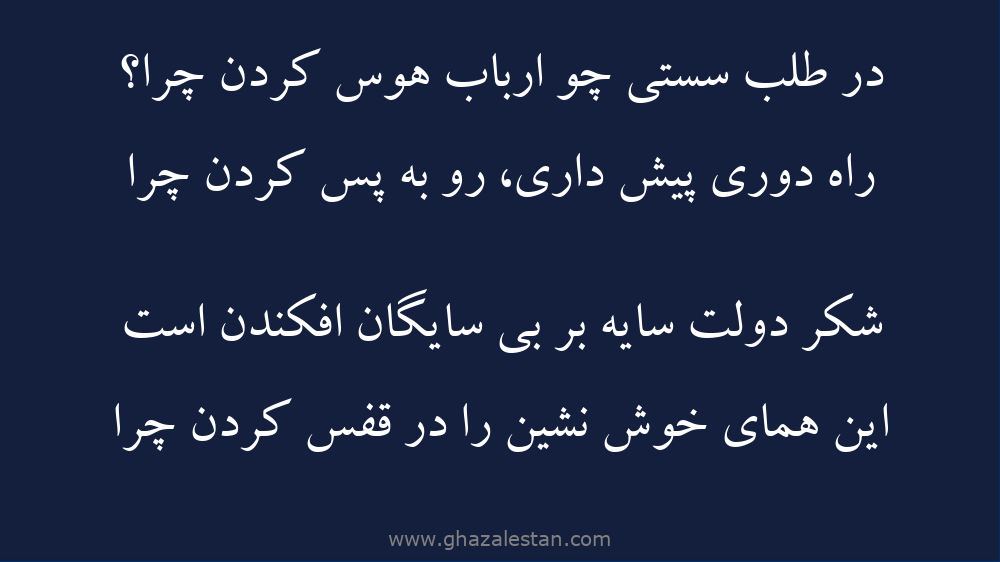 وحشت آباد جهان را منزلى در کار نيست