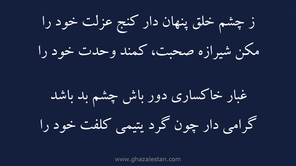 ز چشم خلق پنهان دار کنج عزلت خود را