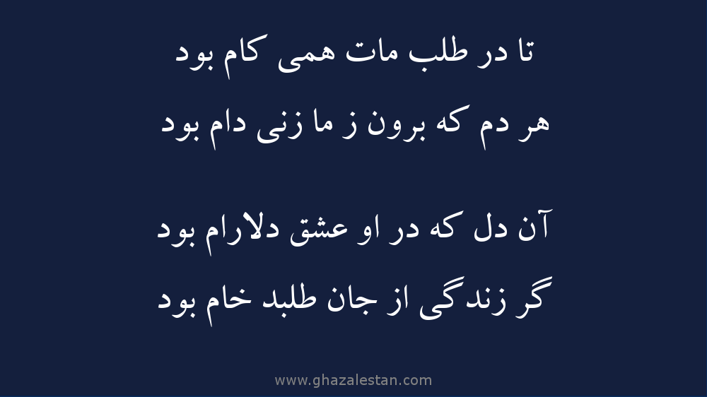 تا به دنبال کامجویی ازبندههستی هردم وبازدمی که خارج از ما بزنی خیال خام خواهدبود«ما درتو هستیم» دلی که پر شده ازعشق دلارام است اگر باجان خود طالب زندگی باشد فردی خام وناپخته است.چون حیف باشد از او غیر او تمنایی.