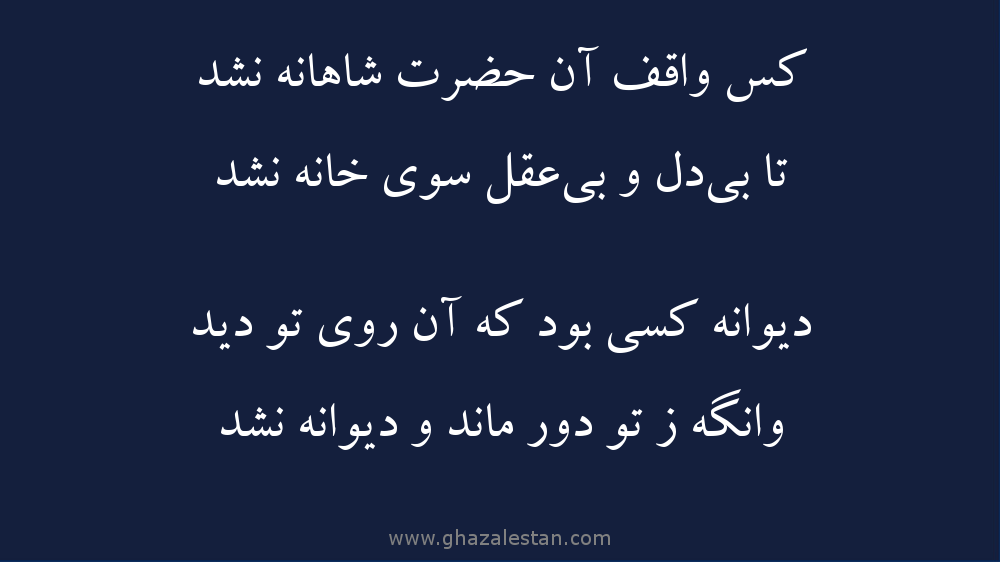 کس واقف آن حضرت شاهانه نشد