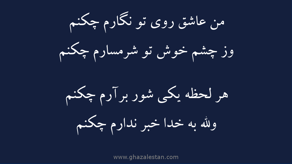 من عاشق روی تو نگارم چکنم
