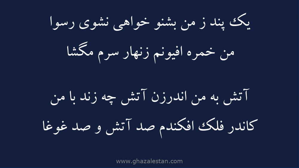 كاندر فلك افكندم صد آتش و صد غوغا