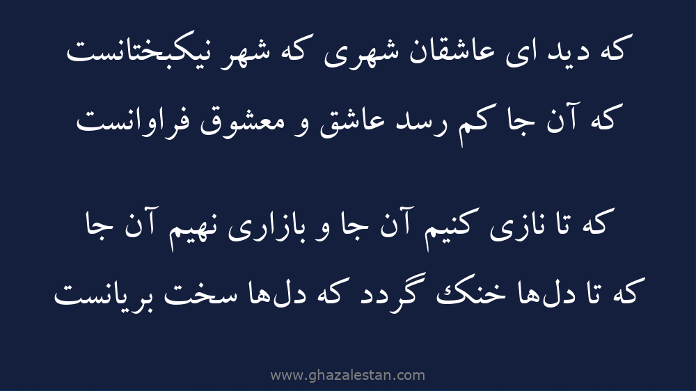 كه دید ای عاشقان شهری كه شهر نیكبختانست