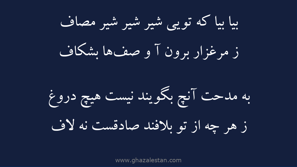 بیا بیا كه تویی شیر شیر شیر مصاف