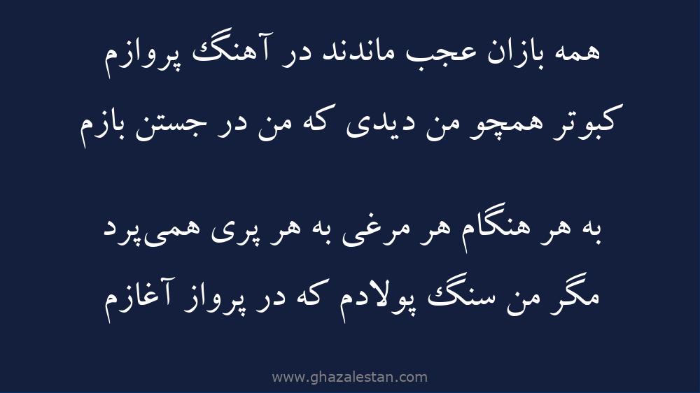 مگر من سنگ پولادم كه در پرواز آغازم