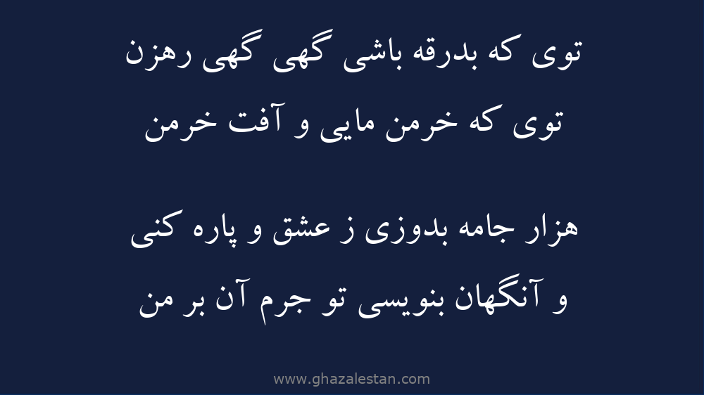 توی كه بدرقه باشی گهی گهی رهزن