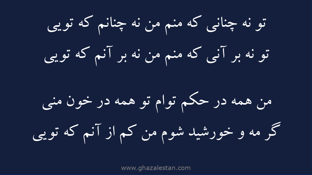 تو نه بر آنی كه منم من نه بر آنم كه تویی