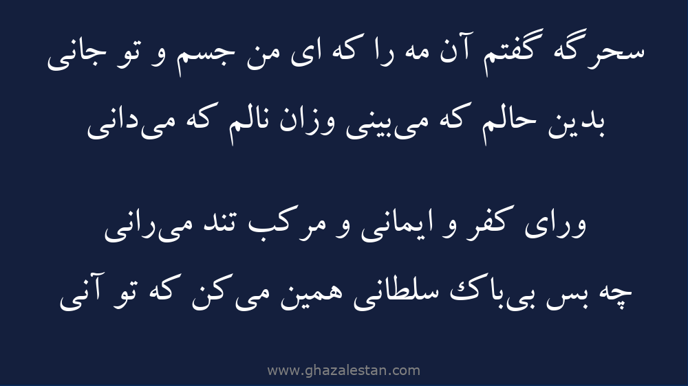 سحرگه گفتم آن مه را كه ای من جسم و تو جانی
