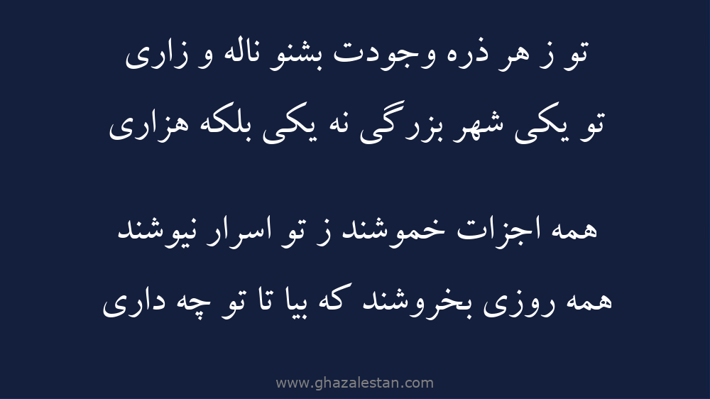 تو ز هر ذره وجودت بشنو ناله و زاری