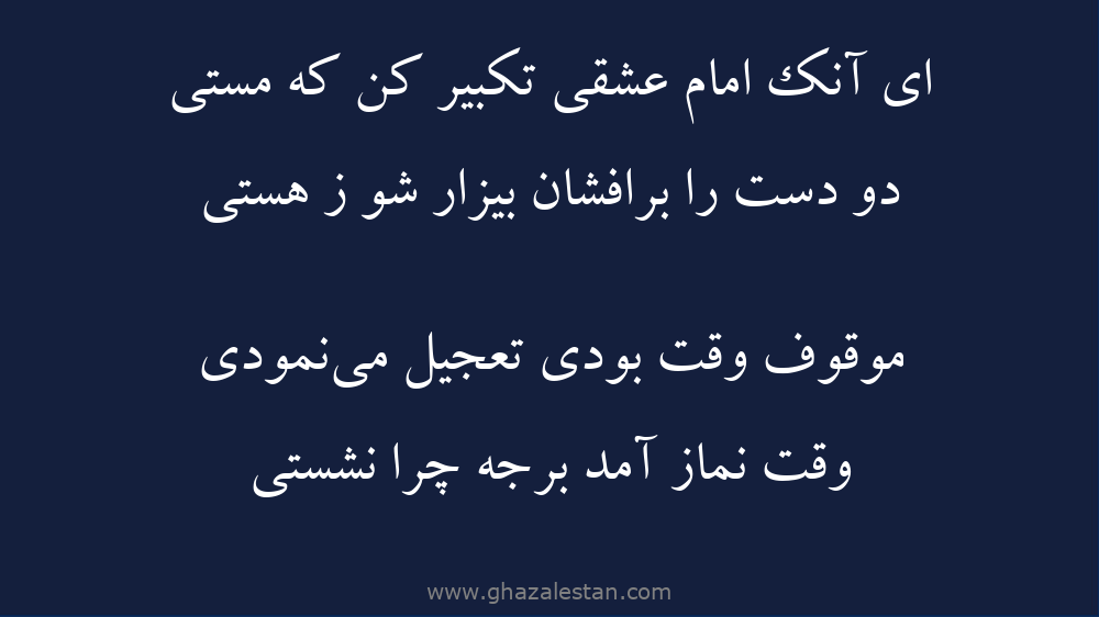 ای آنك امام عشقی تكبیر كن كه مستی