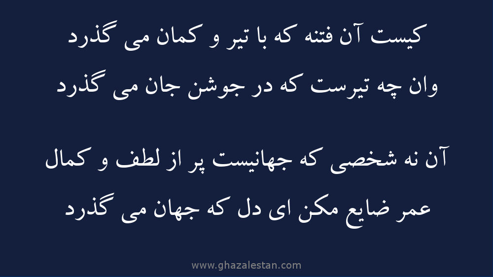 وان چه تیرست که در جوشن جان می گذرد