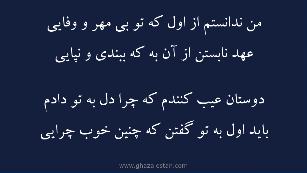 من ندانستم از اول که تو بی مهر و وفایی