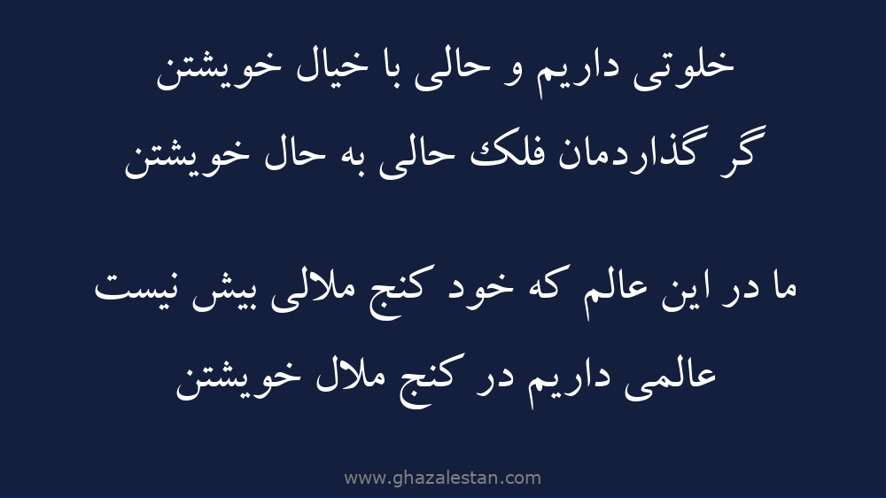 ما در اين عالم که خود کنج ملالى بيش نيست