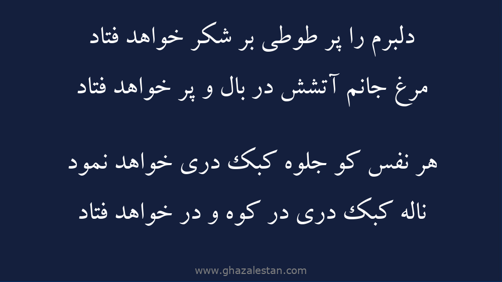دلبرم را پر طوطى بر شکر خواهد فتاد