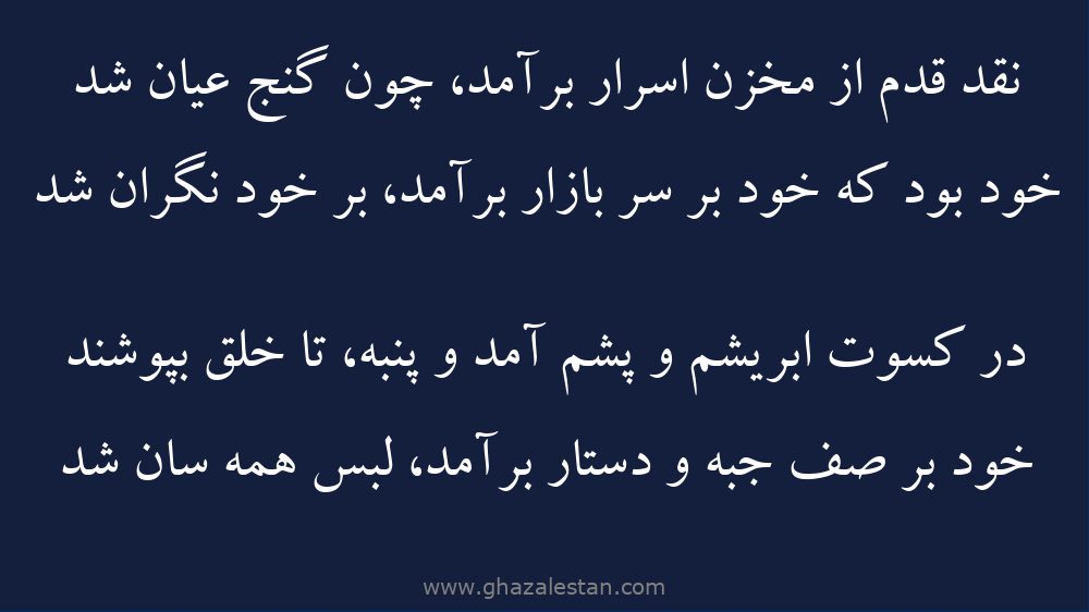 نقد قدم از مخزن اسرار برآمد، چون گنج عيان شد