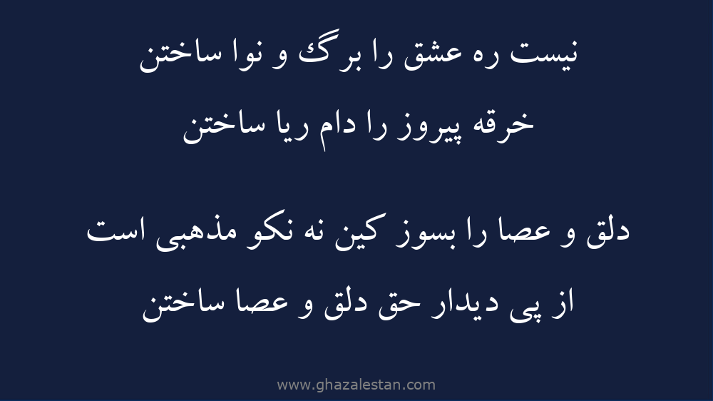 دلق و عصا را بسوز کين نه نکو مذهبى است