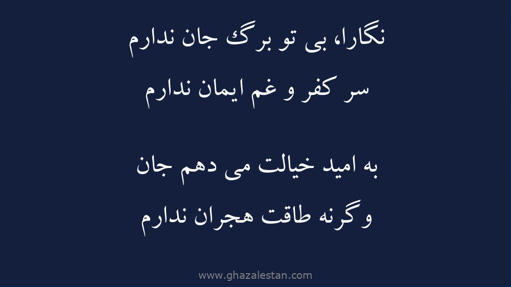 نگارا، بى تو برگ جان ندارم