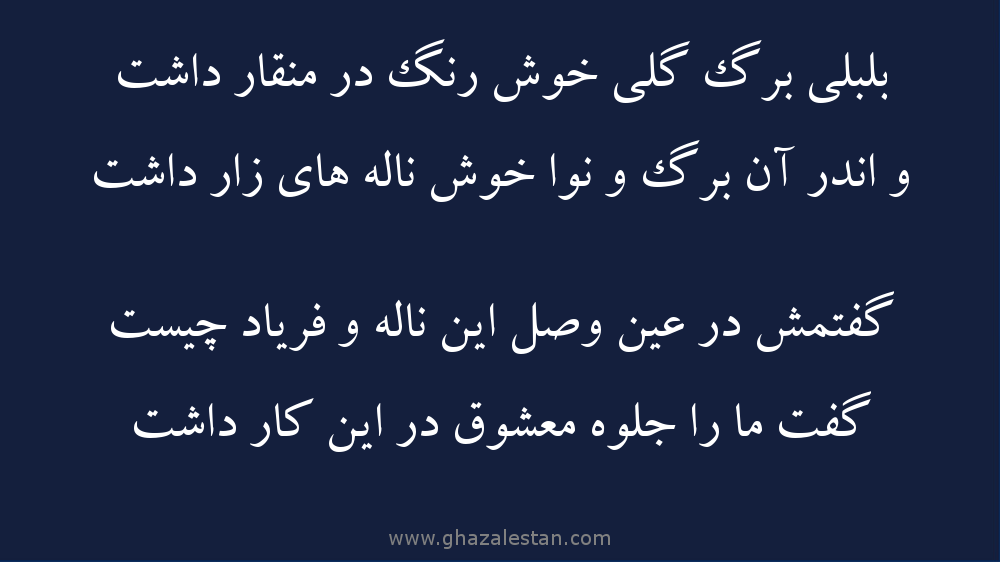 بلبلی برگ گلی خوش رنگ در منقار داشت