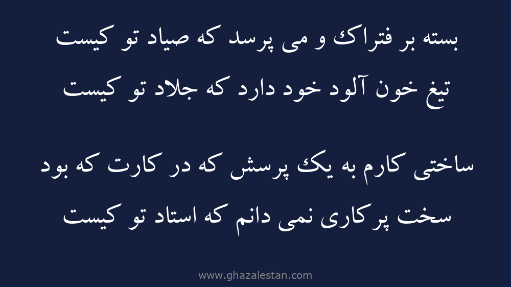 بسته بر فتراک و مى پرسد که صياد تو کيست